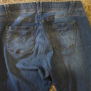 Stylish flare jeans by Democracy. Deep blue hue. Comfortable fit for everyday wear.