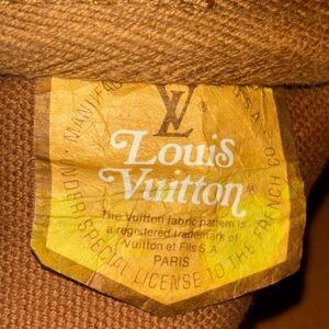 This is a Vintage Authentic Louis Vuitton Keepall Bandoulière 45 Monogram Canvas Duffle Bag is a stylish and luxurious travel bag designed for women. Made of brown monogram canvas with gold-plated hardware, this rectangular duffle bag features a zip closure and adjustable beige leather strap. With a spacious interior lined with brown canvas, this bag is perfect for travel and showcases the iconic Louis Vuitton Keepall design. Crafted in USA It was made by the French Company 70-80s and manufactured in the US. They made pieces that were looked different then their mainstream pieces, including the speedy bags, sac plat, luggage, etc. The leather was a lot heftier in my opinion (it wasn’t the Vachetta that they use now)., this duffle bag exudes elegance and sophistication, making it a must-have accessory for any fashion-forward woman.
