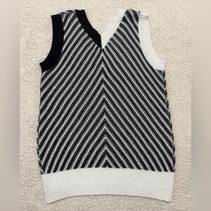 Black and White Chevron V Neck Knit Top/Vest NWOT