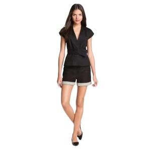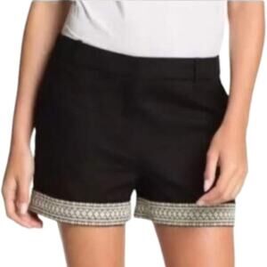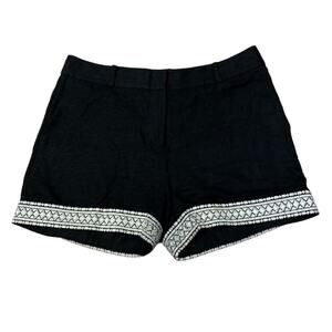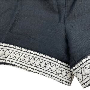 Kate Spade NY Black Linen White Geometric Embroidered Lining Shorts sz US 2 NWOT