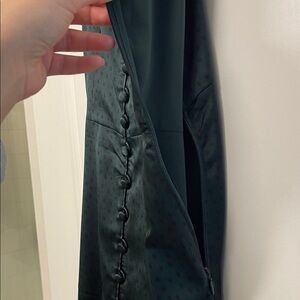 Chic dark green midi dress with button detail. Spaghetti straps and front slit add elegance. Worn once for a company Christmas party!