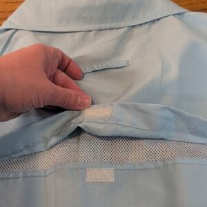 Stay cool and stylish with this light blue short sleeve outdoor fishing shirt. Collared, button up, lightweight and breathable.