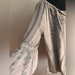 Young Threads Gray Boho Blouse. Beautiful peasant style flowy blouse size L. 100% Viscose NWT