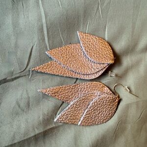NWT! Beautiful shining gold drop earrings handmade in Uganda. All three leaves are gold metallic leather. Leather tanning used sustainable nontoxic methods. Fair trade. 4”.