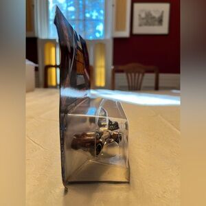 Explore the galaxy with the Hot Wheels Star Wars Die-Cast Vehicle Set. Featuring a sleek black vehicle and a striking gold vehicle, this set is perfect for young fans and collectors. Experience thrilling Star Wars action with these high-quality cars. Box is slightly bent as shown.