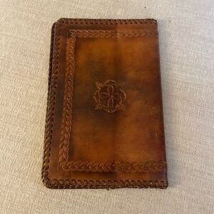 Softened with age, gently used, vintage hand-tooled leather cover. Fits book 7.5" x 5"
