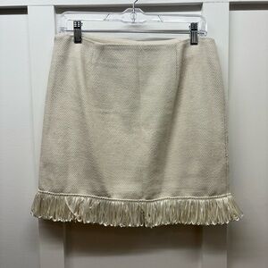 Boston Proper Yellow Floral Embroidered Mini Skirt with Fringe