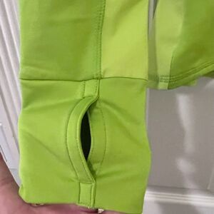 Athleta Lime Green Half Zip Long Sleeve Athletic Top Size Small - Thumb openings at cuff; zip side pocket.