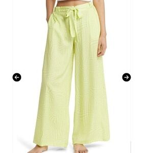 Open Edit Wide Leg Lounge Pants High Waist Tie Belt Comfy Yellow Size XS New
