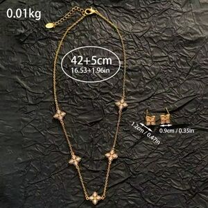 This exquisite gold necklace and earrings set features delicate floral accents, perfect for adding a touch of elegance to any outfit. Ideal for both casual and formal occasions.