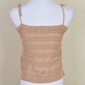 Line & Dot Cable Knit Sweater Tank Top. Size XS. Tan brown color. Adjustable tie shoulder straps. Side hem slit.
