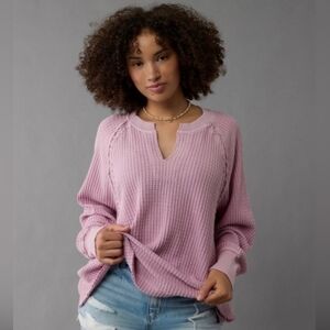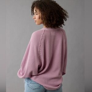 American Eagle Big Hug Notched Waffle Knit Oversized Top