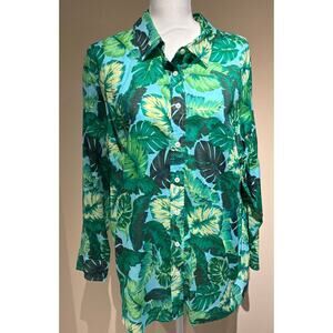 Talbots 100% Cotton Long Sleeve Green Floral Shirt 2X