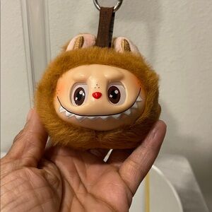 Pop Mart Labubu - The figure has a vinyl face with a wide, sharp-toothed grin and a plush, fuzzy brown exterior. Two Baby Three Elf Blind Box. Comes with Luggage tag.