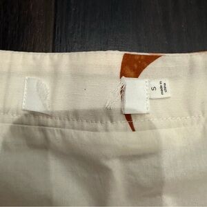 Eye-catching ASTR The Label mini skirt in a cream base with desert-inspired motifs including moons and palms. Features a side slit and ruched waist detail for a flattering fit. Brand tag removed; otherwise new without tags.