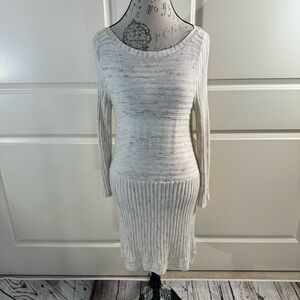 Chic long ribbed sweater tunic by Moth. Soft cream color with brown/gray marling. Great with leggings or as a mini dress. Excellent condition.