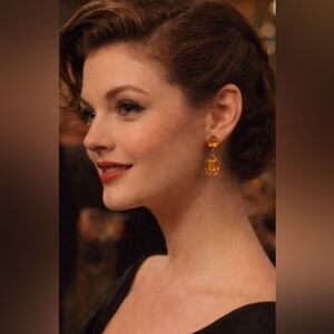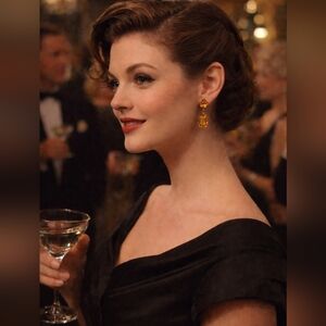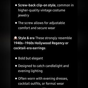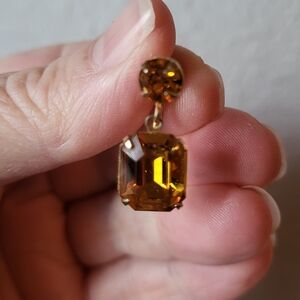 Add a touch of elegance with these Hollywood glam 50s rich amber screw on drop costume jewelry earrings.