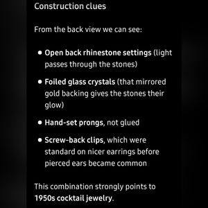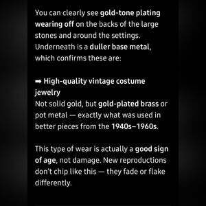 See slides for AI description. These have some minor flaking which indicates they are higher quality costume jewelry.