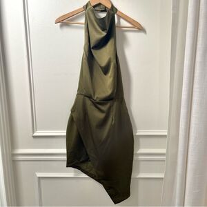 Elliatt Revolve Camo Asymmetric Satin Cocktail Dress Dark Green Size NWT