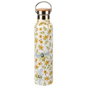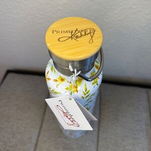 This drink bottle features all-over watercolor bee and floral designs with a bamboo twist off lid that features engraved “Primitives By Kathy” logo— and has a convenient stainless steel handle to carry your beautiful new tumbler!