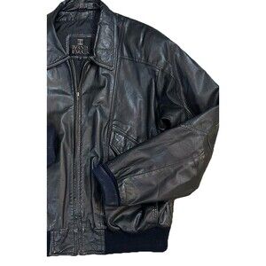 Vtg Byrnes & Baker Black Leather Bomber Jacket Mens XL 80s 90s Moto