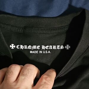 Black tee with striking red and white graphics. Iconic Chrome Hearts style.