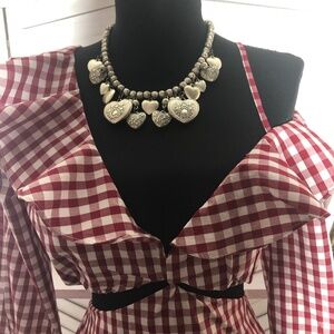 Lovers and Friends Gingham Red One Shoulder Mini Dress M