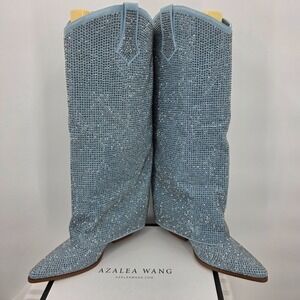 AZALEA WANG Banian Knee High Rhinestone Denim Western Boot 8.5 NWT
