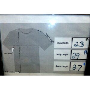 Top to bottom = 27 inches, armpit to armpit = 21 inches