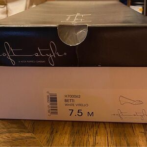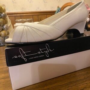 Step out in style with these elegant white peep-toe heels from Anne Klein. Perfect for any occasion, they offer a chic design and comfortable fit.