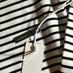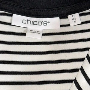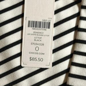 NWT CHICO’S SMALL/SIZE O UPF LONG SLEEVE BLACK TOP STRIPE SHIRT BLOUSE
