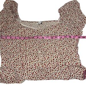 American Eagle Women’s L Boho Floral Blouse Smocked Back Cottagecore Cap Sleeve