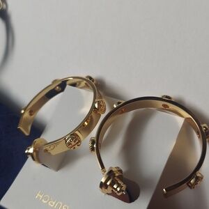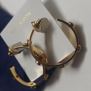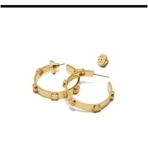 Authentic Tory Burch GolD Milgrain Logo Hoop Earring