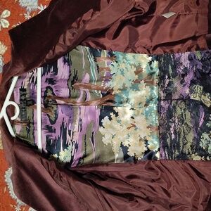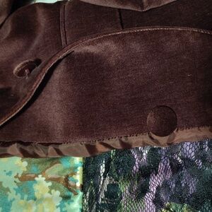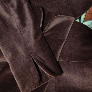 Minor wear visible at cuffs (see pics). Otherwise, excellent condition. Size 12, measurements in photos. Single button, sleeves can be cuffed up or worn down. Made of natural and synthetic fabrics that offer a smooth velvet texture. Check out the cool lining!