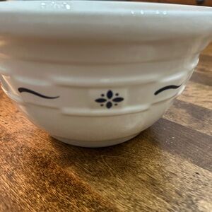 Charming Longaberger ceramic bowl. Cream base with subtle blue accents. Ideal for serving or display. 8”