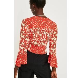 Free People Lady Bohemian crop blouse with orange and yellow floral bohemian floral print. Super cute and lightweight boho top, great for the warm weather! Bright and vibrant. Size large.