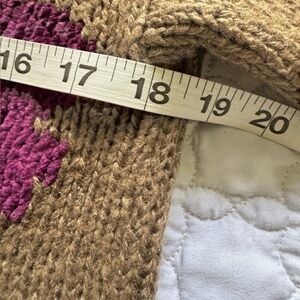 Stay cozy and stylish with this beautiful floral knit sweater. Featuring a rich brown base with vibrant red and purple floral accents, this sweater is perfect for adding a pop of color to your wardrobe.