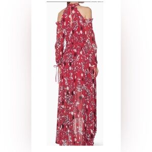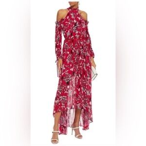 NWT Self-Portrait Red Floral Cold Shoulder Maxi Dress Hi-Low $784 Romantic Small