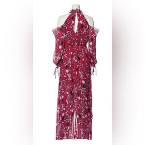 Absolutely stunning Self-Portrait cold shoulder maxi dress, brand new with original tags. This romantic, high-fashion piece features a pleated chiffon silhouette with an elegant hi-low hem, cold shoulder cutouts, and a high neckline for a dramatic yet feminine look.