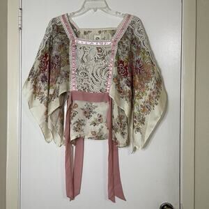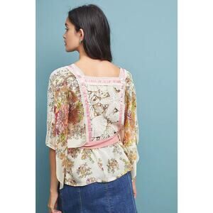 Anthropologie TINY Begonia floral kimono Ribbon wrap blouse top Small