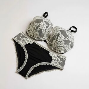 NWT Experience comfort and elegance with cream lace over black underwire bra. Perfect for everyday wear, it offers support and style.
