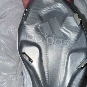 Sleek Adidas sneakers cleats with a white and silver glitter design. Comfortable and stylish for woman’s baseball with cushioned sole