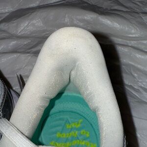 Shoe have been worn once the shoe laces some dust and dirt on shoe laces and dirt and dust in the heel area as well