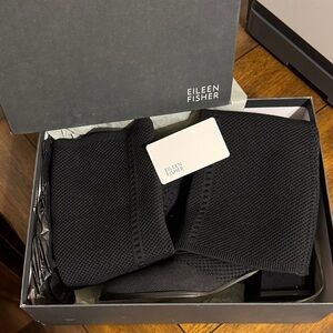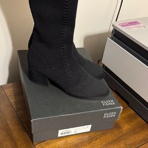Eileen Fisher Alas Stretch Knit black boots with a textured finish. Perfect for a stylish look.