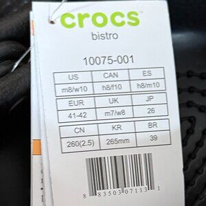 New With Tags Black Bistro CROCS Work Clogs Mens 8 Women's 10 USA Shoes