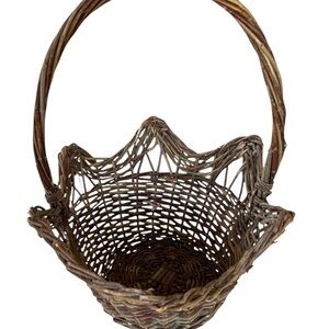 Large basket 11“ x 13“ x 15 1/2“ tall this basket has a few pieces of wood that have snapped as seen in the picture.