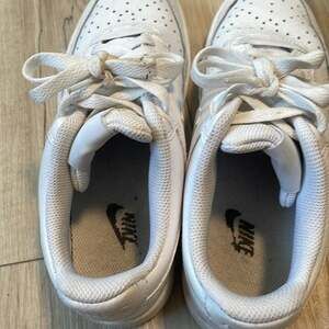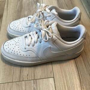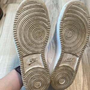 Nike Low Air Force Sneakers size 7.5. Worn, and some dirt stains on the one shoe tongue and laces (see final photo), but just need a good wash or replacement lace. Otherwise in great condition.