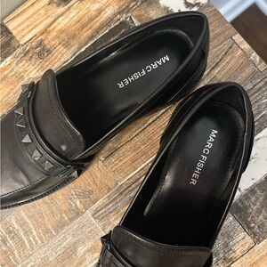 Marc Fisher Black Studded Leather Loafers | Size 7