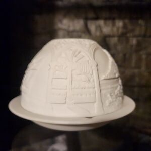 Technique: The image is created using a traditional engraving technique called lithophane, which relies on the varying translucence and shadow of the porcelain thickness to reveal the detailed design when backlit.