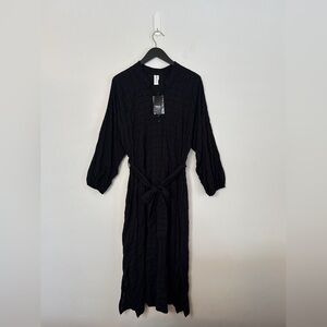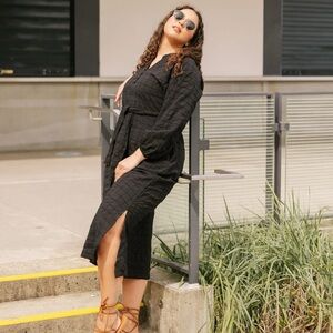 NEW WITH TAGS - SMASH & TESS - Sightseer Dress in Black Grid Pattern. Self tie matching belt. Pockets. Buttoned neckline. MADE in CANADA.